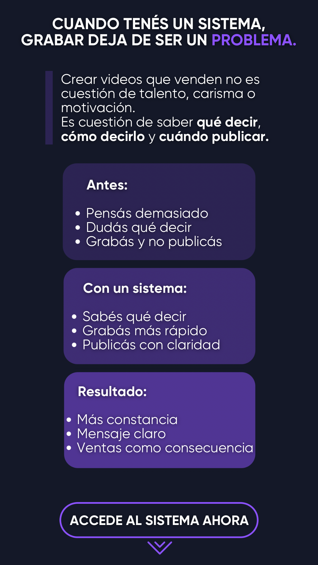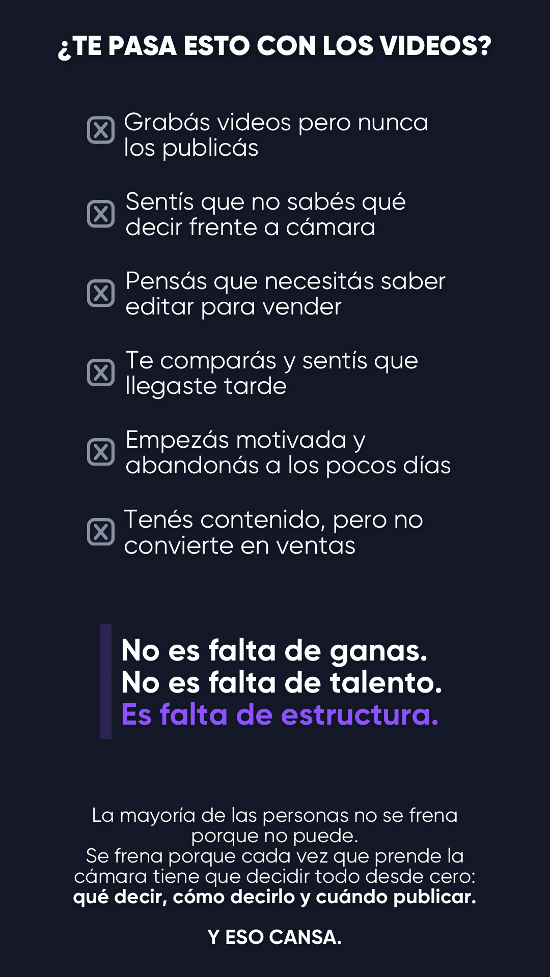 Para nada. Es ideal si estás empezando, si te cuesta grabarte, si postergás o si sentís que “los videos no son para vos”
