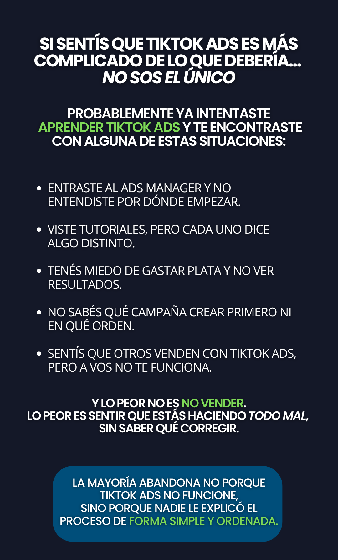 Queremos que empieces con TikTok Ads sin miedo y sin presión.